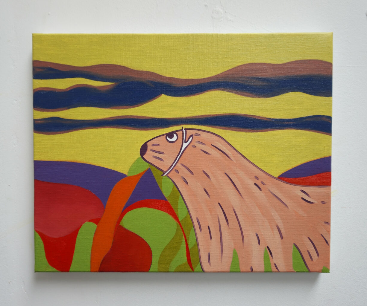 L’atelier au mois d’avril 2025.Rivages reflets. 81 x 100 cm. Huile sur toile. 2025.La fourmi. 22 x 16 cm. 2025. Huile sur toile.L’atelier à Pont-Croix en février 2025.